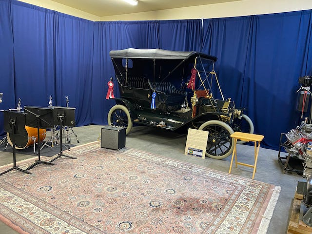 The 1910 Model T that was my Dad’s was back behind the band area. It has a few of the best in class ribbons it has won at the Concours d’Elegances we attended with it.